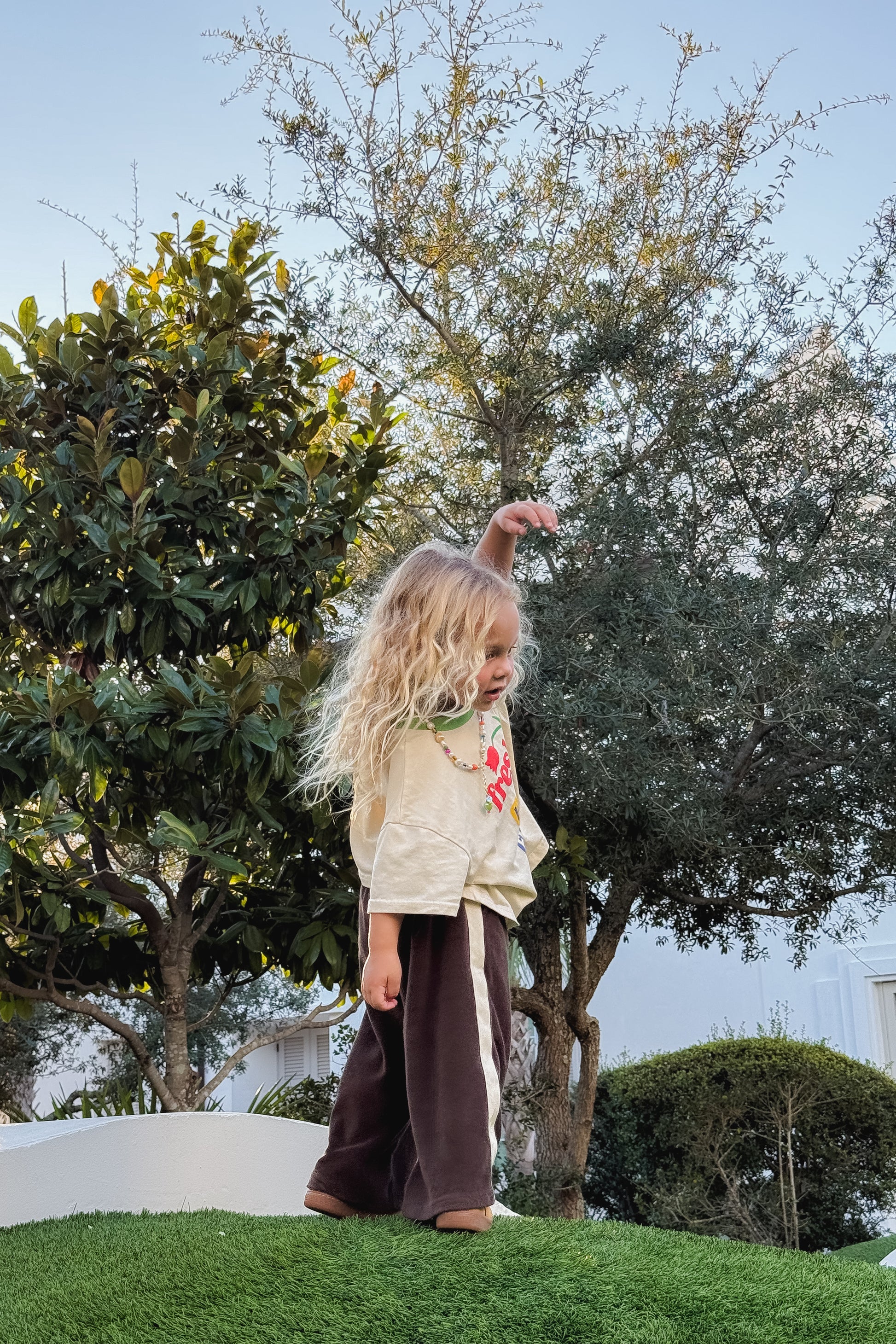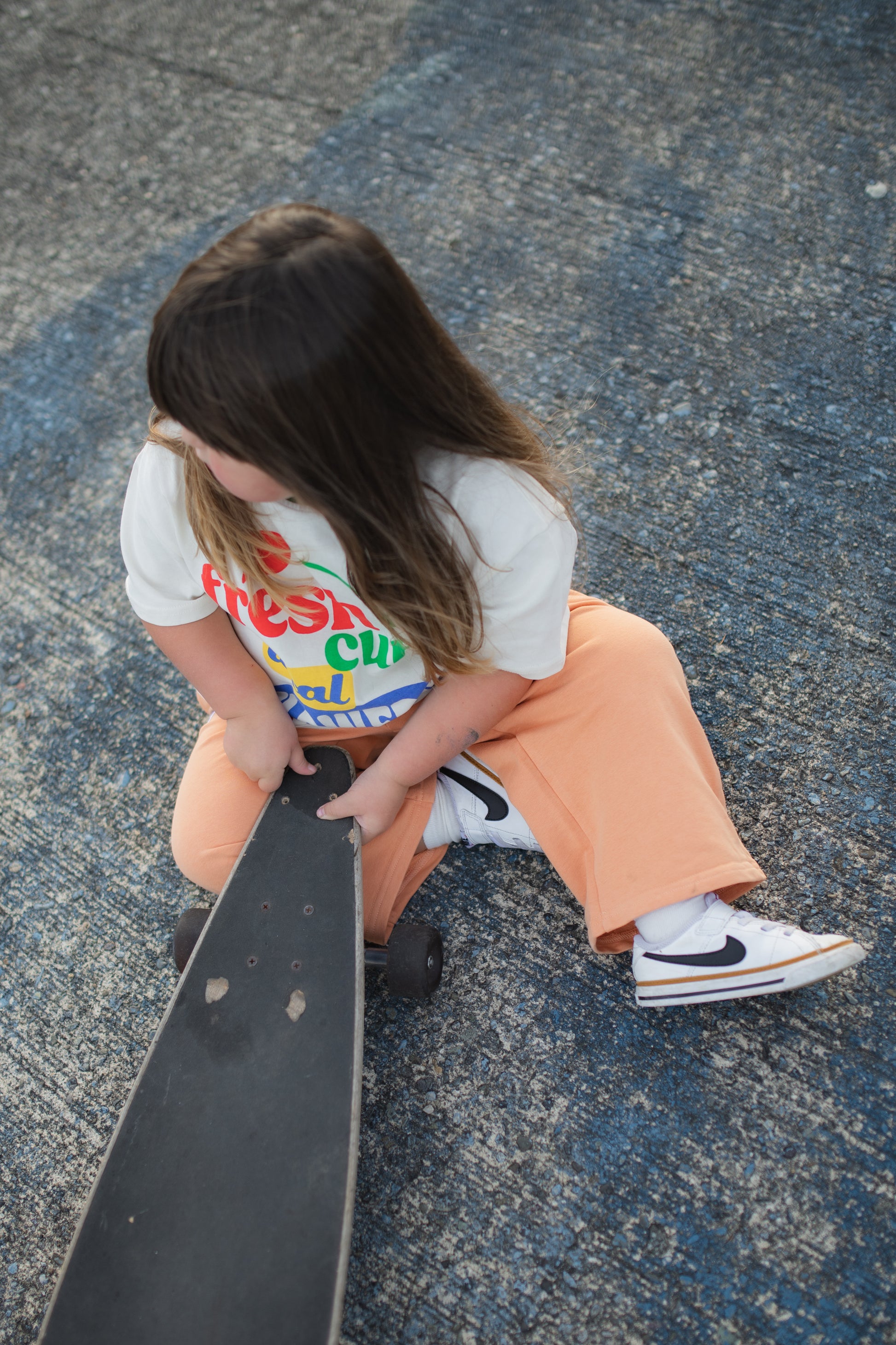 Our tees are designed to grow alongside your little one! With an oversized, boxy cut, just grab the size closest to your child's age. If they’re in between, size down for a perfect fit or size up to keep it roomy a little longer. Made from 100% cotton, these tees get even comfier with each wash, and will shrink slightly after washing.