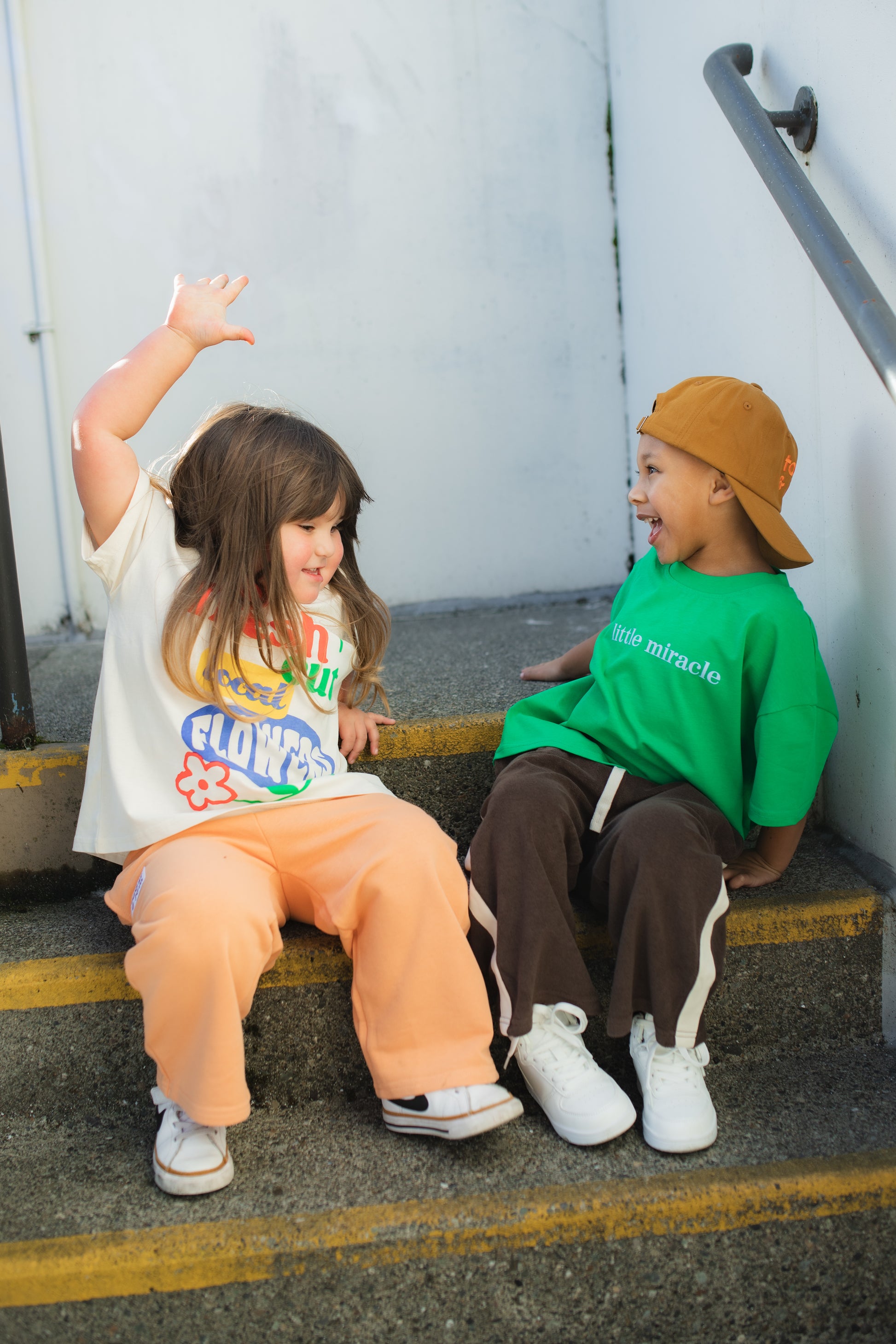 Made from 100% cotton with a contrast ribbed collar, the Flower Market Tee offers a retro-inspired boxy fit that’s perfect for play and adventure. Its fun, colorful graphic brings a whimsical touch to everyday outings, making it a lively choice for kids who love to explore with style and comfort.
