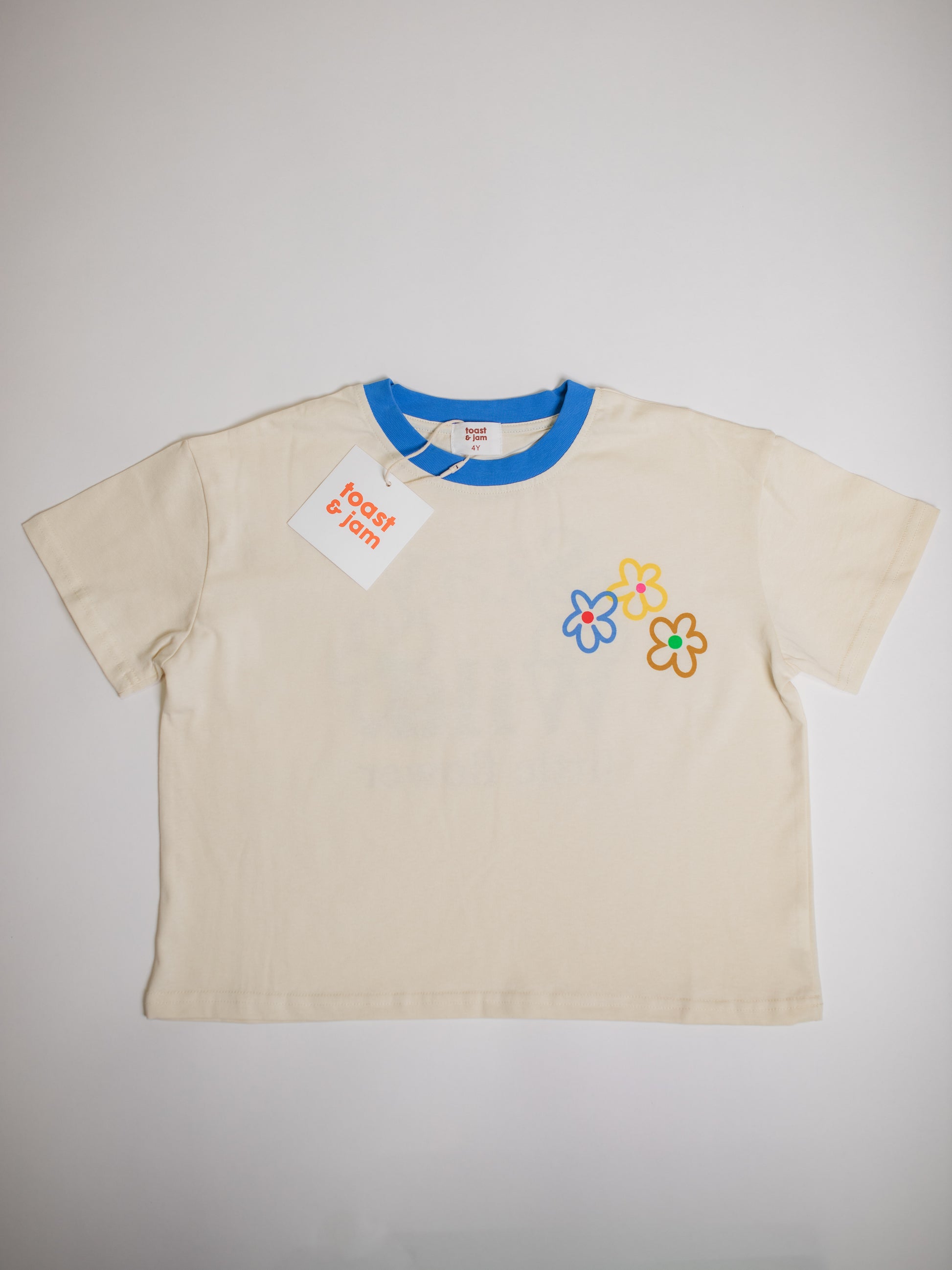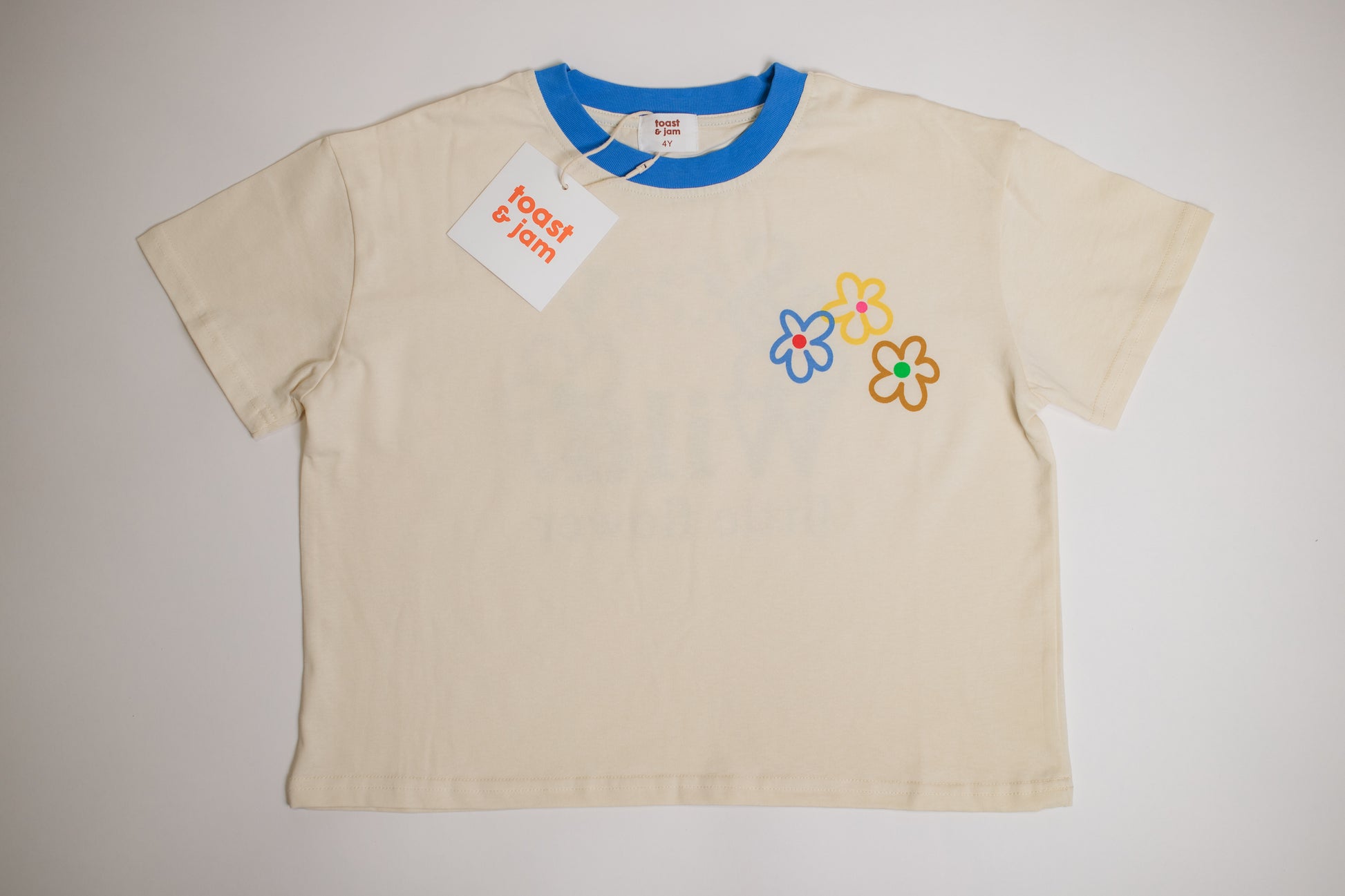 Celebrate your wild little spirit with the Wildflower Tee. Made from soft 100% cotton in a natural ecru shade, this tee features a playful retro-inspired boxy cut and a contrast ribbed neckline for extra charm. The lively graphic perfectly captures the energy of your adventurous kiddo, making it a fun and comfy wardrobe staple for everyday explorations.